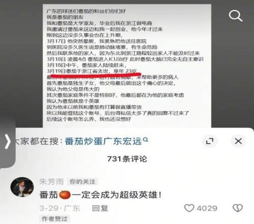 后来我们了解到番茄的故事,他是一名广东队球迷。曾在浙江做电商创业,当事业在上升期的时候突然遭遇变故。3月17日的时候番茄突然晕厥后被查出肺动脉堵塞,在3月18日凌晨4点进入ICU治疗,最后还是没能救回,于3月19日去世,享年23岁。